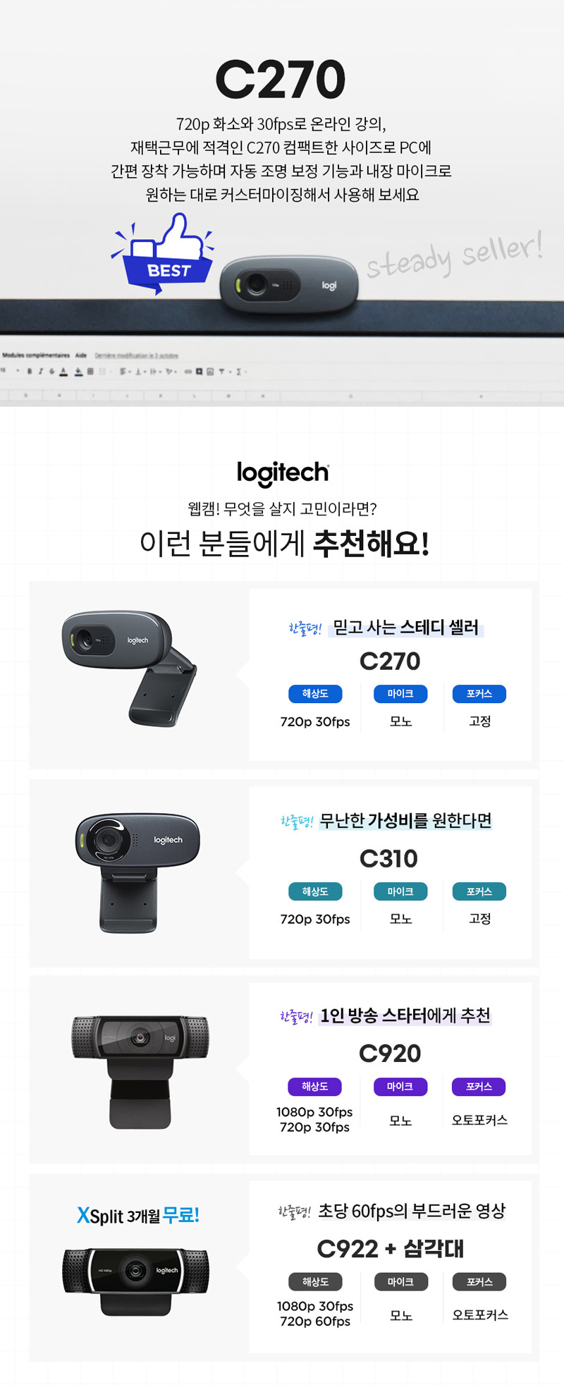 로지텍 HD WebCam C270 (정품)