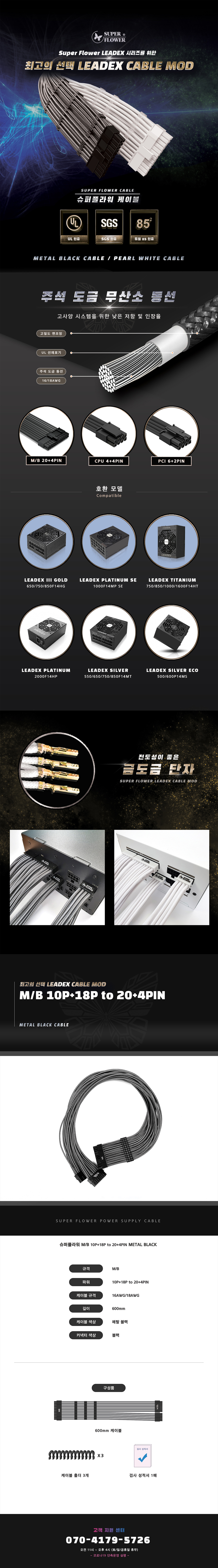 SuperFlower MOD ATX(20+4)핀 케이블 (메탈블랙, 0.6m)