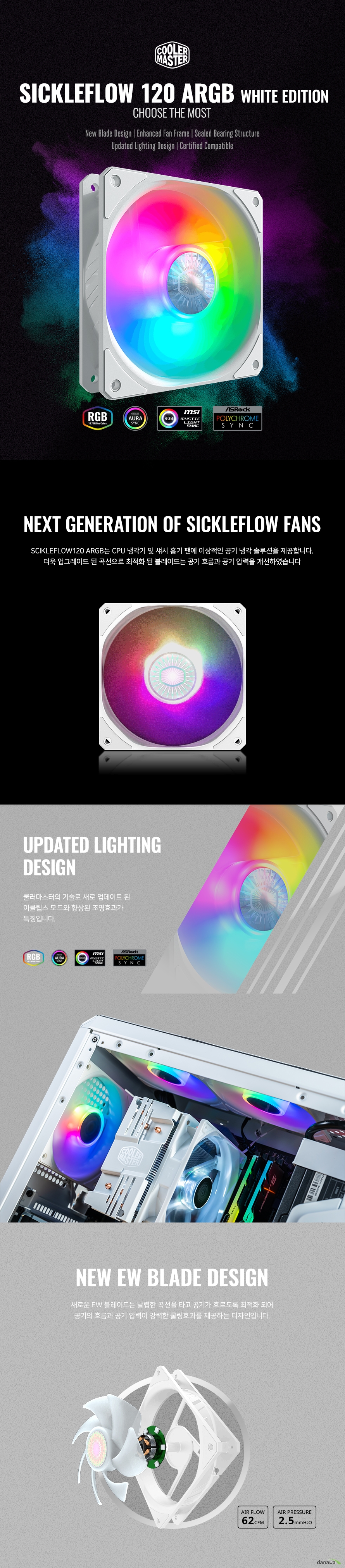 쿨러마스터 SICKLEFLOW 120 ARGB WHITE EDITION