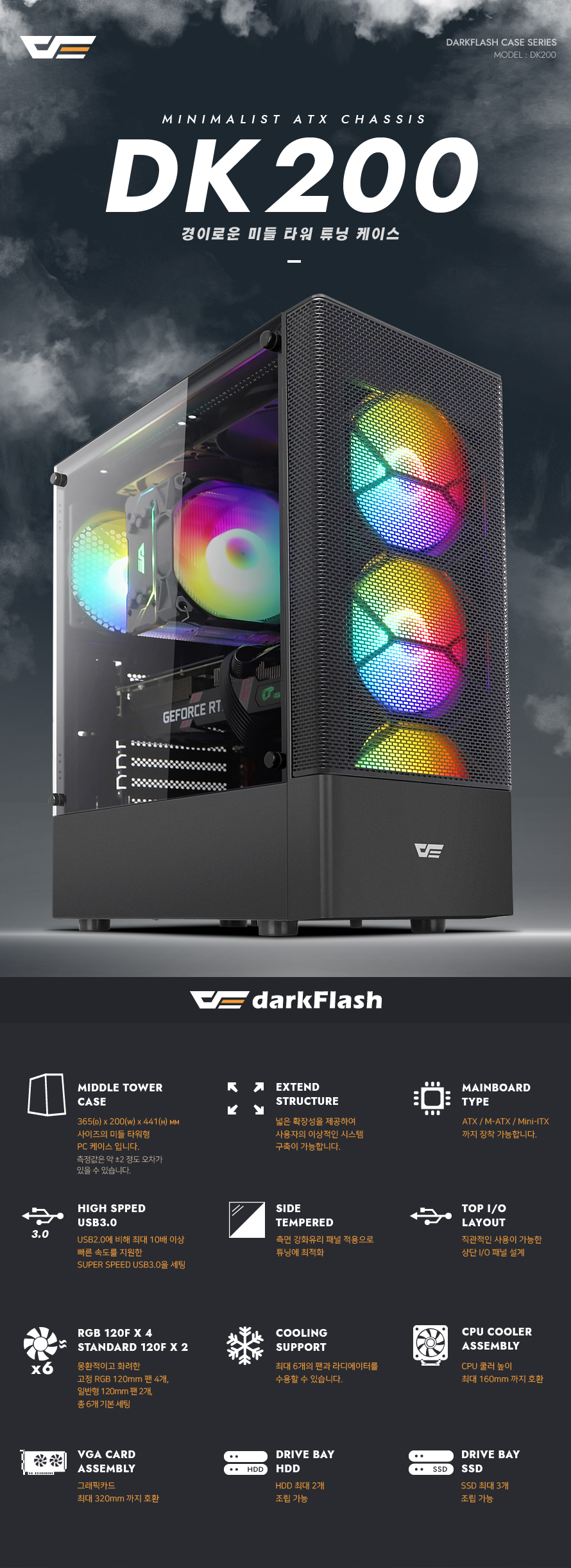 darkFlash DK200 RGB 강화유리 (블랙)